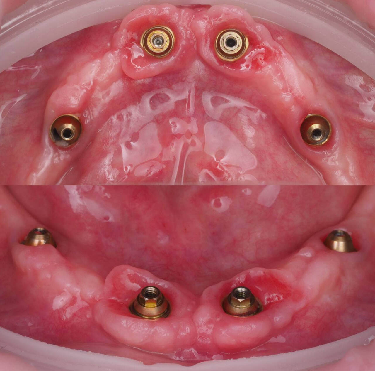 Установлено 4 имплантата AnyRidge, зафиксированы мультиюниты.