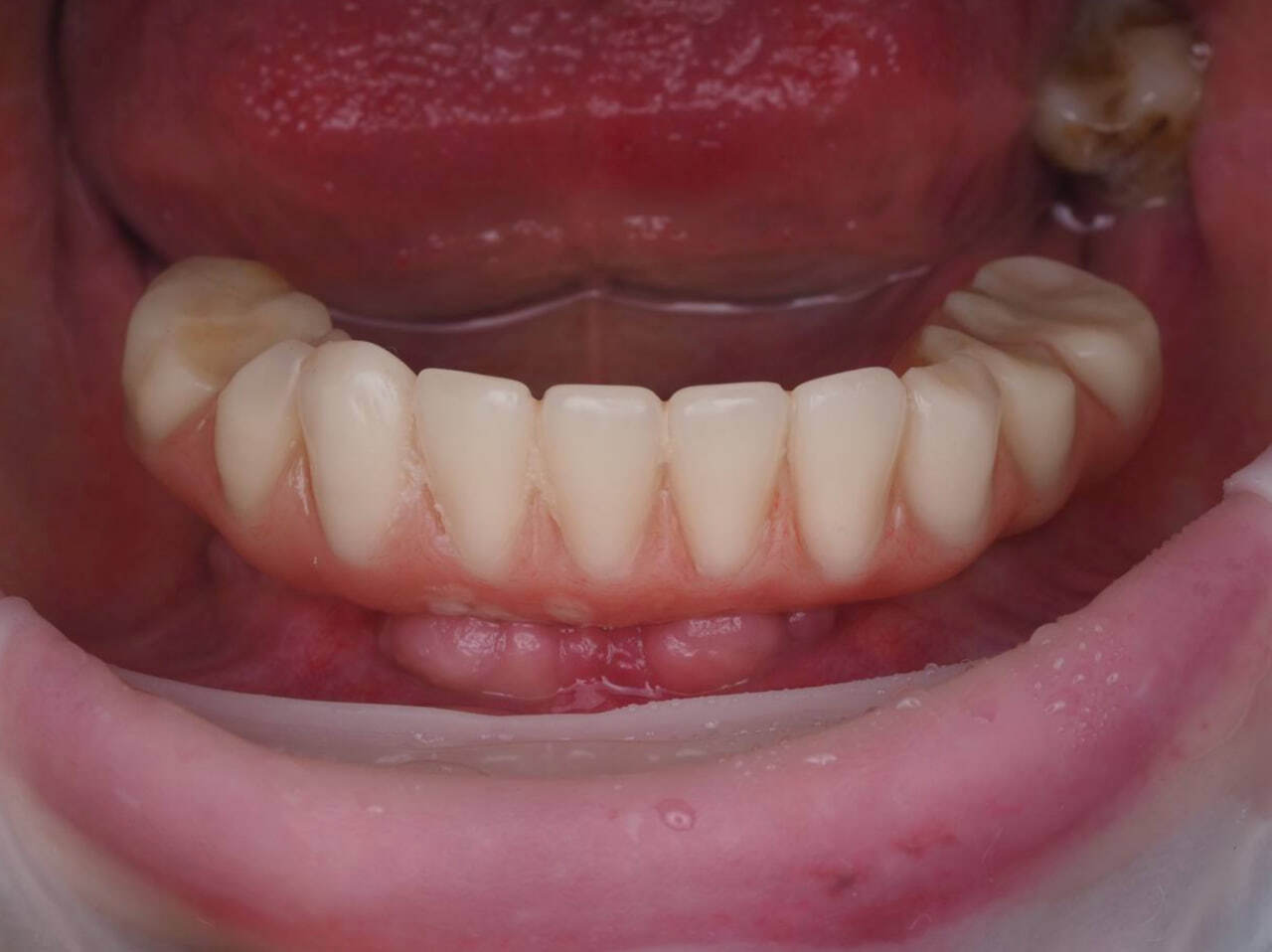 После снятия адаптационного временного протеза прекрасное состояние мягких тканей.