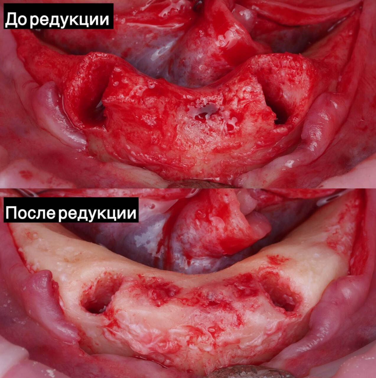 Несостоятельные зубы удалены, проведена редукция костной ткани гребня.